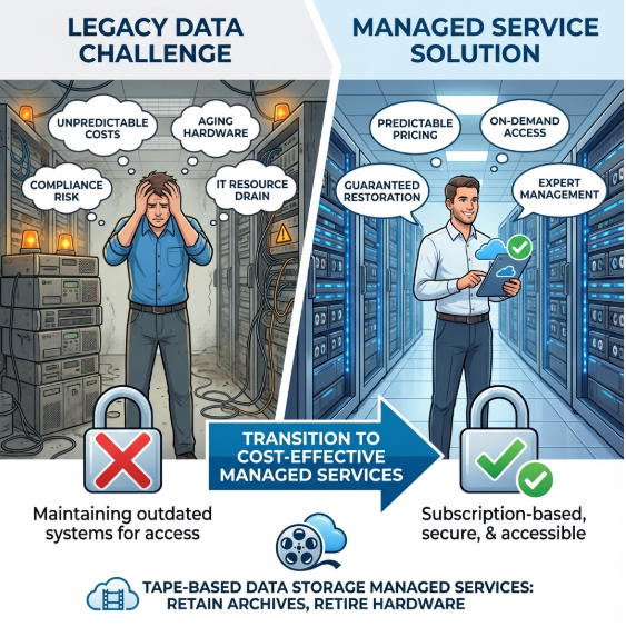 If you're facing the challenge of retiring aging tape hardware while still needing access to archived data, you're not alone. Many organizations struggle with the costly burden of maintaining legacy backup infrastructure just to satisfy regulatory and compliance requirements. Fortunately, there's a more economical solution: subscription-based managed services.